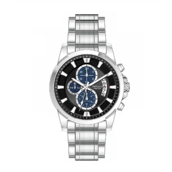 OPIS: Boja brojčanika: Crna Boja narukvice: Srebrna Materijal kućišta: ČelikMaterijal narukvice: ČelikOblik kućištaOkrugloPrečnik kućišta: 46 mmVodootpornost: 3 ATMMehanizam: KvarcniPol: Muški