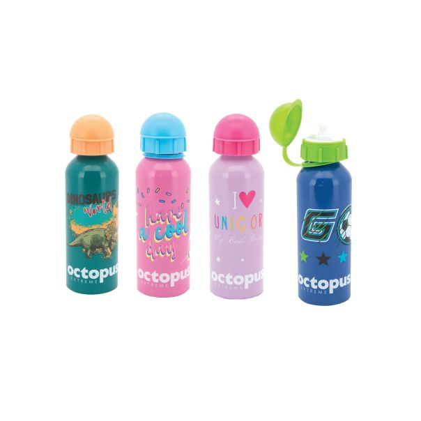 Dečija flašica za vodu izrađena je od aluminijuma kapaciteta 500 ml. Sadrži plastični čep sa pipkom.