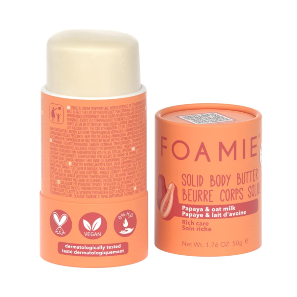 Ukoliko želite mekanu, hidriranu i baršunastu kožu Foamie čvrsti butter za telo je nešto što želimo da probate. Zahvaljujući shea maslacu, ovsenom mleku i papaji vaša koža dobiće sve što joj je potrebno.