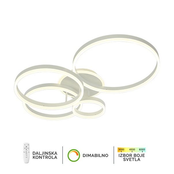 LED plafonska lampa Forma F2047-132C WH koja dolazi u beloj boji, doprinosi modernom izgledu vaših prostorija. Jačina od 132W sa integrisanim LED svetlom omogućiće vam dugotrajno i elegantno osvetljenje.Takođe poseduje daljinski upravljač za odabir boje svetla u rasponu od 3000K do 6400K kao i dimovaje,sto omogućava da podesite jačinu svetla vašim potrebama.Zbog svojih dimenzija od Ø220xØ400xØ400xØ500mm ova lampa je idealna za osvetljenje trpezarije, spavaće ili dnevne sobe.