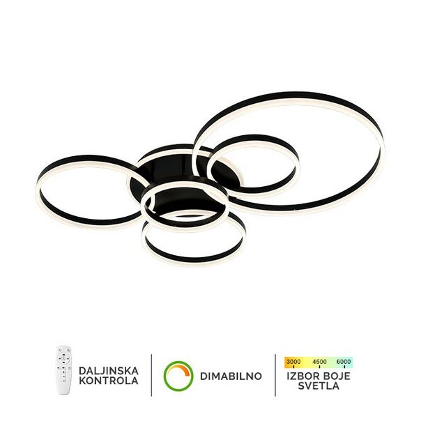 LED plafonska lampa Forma F2047-174C BK koja dolazi u crnoj boji, doprinosi modernom izgledu vaših prostorija. Jačina od 174W sa integrisanim LED svetlom omogućiće vam dugotrajno i elegantno osvetljenje.Takođe poseduje daljinski upravljač za odabir boje svetla u rasponu od 3000K do 6400K kao i dimovaje,sto omogućava da podesite jačinu svetla vašim potrebama.Zbog svojih dimenzija od Ø300xØ600xØ400mm ova lampa je idealna za osvetljenje trpezarije, spavaće ili dnevne sobe.