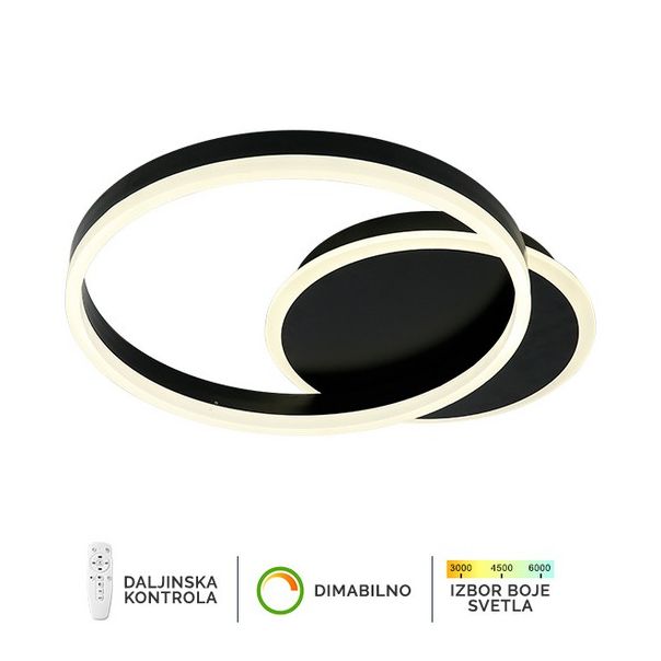 LED plafonska lampa Forma F2047-46C BK koja dolazi u crnoj boji, doprinosi modernom izgledu vaših prostorija. Jačina od 46W sa integrisanim LED svetlom omogućiće vam dugotrajno i elegantno osvetljenje.Takođe poseduje daljinski upravljač za odabir boje svetla u rasponu od 3000K do 6400K kao i dimovaje,sto omogućava da podesite jačinu svetla vašim potrebama.Zbog svojih dimenzija od Ø300mm ova lampa je idealna za osvetljenje trpezarije, spavaće ili dnevne sobe.