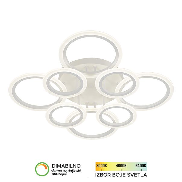 LED plafonska lampa Forma F2083-100C WH koja dolazi u beloj boji, doprinosi modernom izgledu vaših prostorija. Jačina od 100W sa integrisanim LED svetlom omogućiće vam dugotrajno i elegantno osvetljenje.Takođe poseduje daljinski upravljač(koji se kupuje zasebno) za odabir boje svetla u rasponu od 3000K do 6400K kao i dimovaje,sto omogućava da podesite jačinu svetla vašim potrebama.Zbog svojih dimenzija od 120xØ700mm ova lampa je idealna za osvetljenje trpezarije, spavaće ili dnevne sobe.