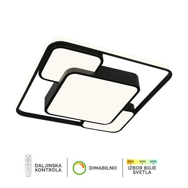 LED plafonska lampa Forma F2823-50C BK koja dolazi u crnoj boji doprinosi modernom izgledu vaših prostorija. Jačina od 50W sa integrisanim LED svetlom omogućiče vam dugotrajno i elegantno osvetljenje.Takođe poseduje daljinski upravljač za odabir boje svetla u rasponu od 3000K do 6400K kao i dimovaje,sto omogućava da podesite jačinu svetla vašim potrebama.Zbog svojih dimenzija od 510x510x70mm ova lampa je idealna za osvetljenje trpezarije, spavaće ili dnevne sobe.