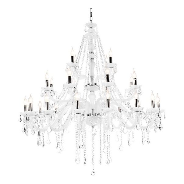 stakla, ovaj luster dolazi u peskiranoj (frost) boji, što omogućava lako uklapanje u različite stilove enterijera. Stakleni detalji koji ga krase dodaju mu sofisticiranost i prefinjenost, stvarajući blistav efekat u prostoru. Ovaj luster sadrži dvadesetosam E14 grla, pružajući izuzetno efikasno i ravnomerno osvetljenje koje doprinosi stvaranju prijatne i tople atmosfere u prostoriji.