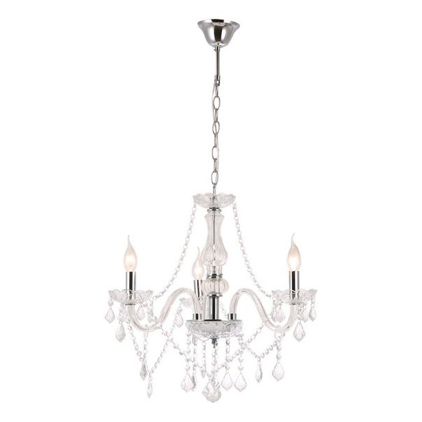 stakla omogućava lako uklapanje u različite stilove enterijera. Stakleni detalji koji ga krase dodaju mu sofisticiranost i prefinjenost, stvarajući blistav efekat u prostoru. Opremljen je sa tri E14 grla, pružajući prijatno i ujednačeno osvetljenje. Sa dimenzijama 1100x530x520 koje omogućavaju da bude centralni element prostorije, ovaj luster je savršen izbor za enterijere u kojima se kombinuju klasičan i moderan dizajn.