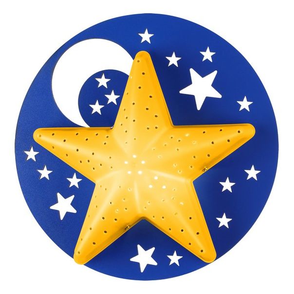 unosi veselu atmosferu u dečiju sobu. Dolazi u plavoj i žutoj boji i sa E27 grlom. Izrađena je od plastike i drveta u dimenziji od 320mm. Funkcionalna i dekorativna, osvetljava prostor i podstiče maštu mališana.