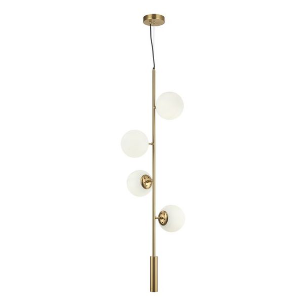 Visilica Forma F7031-4V BZ-WH sa četiri E27 grla unosi savremen, topao i profinjen stil u svaki enterijer. Izrađena je od čvrstog metala u elegantnoj bronzanoj boji, dok su staklene kugle u nežnoj beloj boji, koje daju prijatnu i ambijentalnu svetlost. Dizajn je moderan i luksuzan, sa pažljivo oblikovanim detaljima koji ostavljaju utisak sofisticiranosti i dobrog ukusa.Zahvaljujući svom izrazito elegantnom vertikalnom rasporedu, skladnim bojama i originalnoj formi, ova visilica se lako uklapa u različite stilove uređenja – od modernog i minimalističkog, do glamuroznog i klasičnog enterijera. Dimenzije 1300 × 450 mm čine je idealnim izborom za trpezarije, dnevne i spavaće sobe, ali i za veće hodnike ili prostorije u kojima želite da naglasite visinu i prostranost.