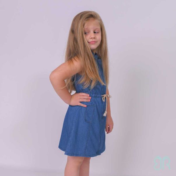 Teksas haljina sa kragnom bez rukava, skrivenim kopčanjem i rajsferšlusom sa prednje strane.