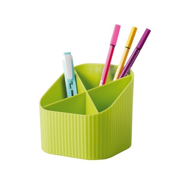 RE-X-LOOP stalak za olovke inovativnog i modernog dizajna napravljen od visokokvalitetne, reciklirane eko-plastike. Dostupan je u više veselih boja. Osvežite svoj radni sto bilo u kancelariji ili kod kuće. Ovaj stalak ima dovoljno prostora za sav tvoj pisaći pribor, kao i prateći pribor. Sastoji se od 4 pregrade različitih visina, tako da ćete imati lakši pristup sitnicama koje su vam potrebne za rad.