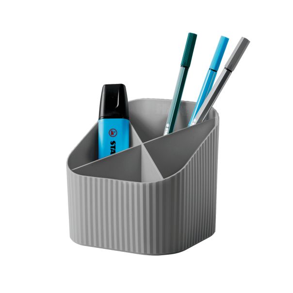 RE-X-LOOP stalak za olovke inovativnog i modernog dizajna napravljen od visokokvalitetne, reciklirane eko-plastike. Dostupan je u više veselih boja. Osvežite svoj radni sto bilo u kancelariji ili kod kuće. Ovaj stalak ima dovoljno prostora za sav tvoj pisaći pribor, kao i prateći pribor. Sastoji se od 4 pregrade različitih visina, tako da ćete imati lakši pristup sitnicama koje su vam potrebne za rad.