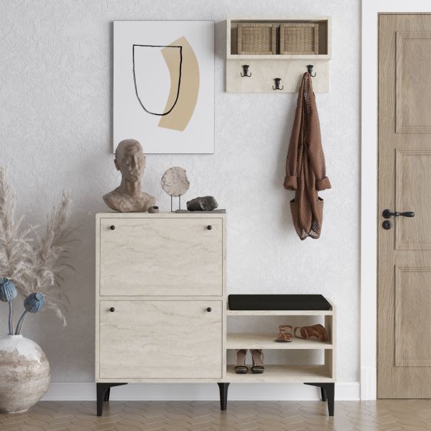 Travertin boja ovog cipelarnika lako se uklapa u različite stilove uređenja, dodajući elegantan i moderan izgled vašem enterijeru. Bez obzira na postojeći dekor, ovaj komad nameštaja će se savršeno uklopiti i unaprediti estetiku vašeg doma.
