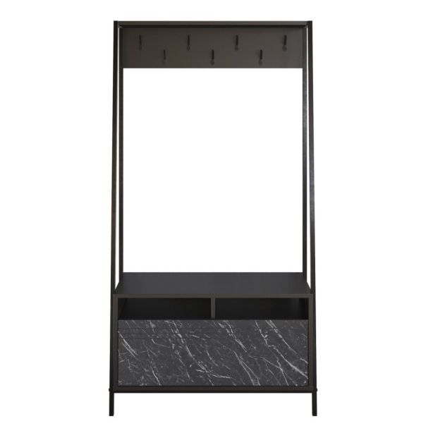 Ovaj cipelarnik dolazi sa metalnim nogama koje osiguravaju stabilnost i izdržljivost. Pored toga, sadrži i poseban odeljak sa vratima od mermera, koji dodaje dodatni nivo elegancije i omogućava diskretno skladištenje obuće ili drugih predmeta.