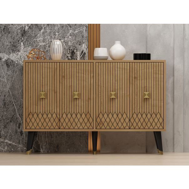 Sa dimenzijama od 120 cm širine, 80 cm visine i 30 cm dubine, ova komoda nudi dovoljno prostora za odlaganje vaših stvari, a istovremeno se lako uklapa u različite prostore. Njena kompaktna veličina omogućava postavljanje u dnevne sobe, spavaće sobe ili hodnike, bez zauzimanja previše prostora.