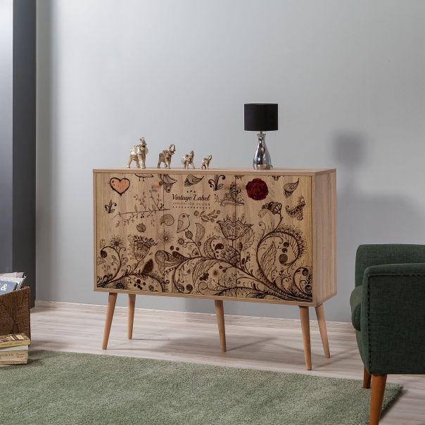 HANAH HOME Komoda Mega 731 je višenamenski komad nameštaja koji se ističe svojom praktičnošću i elegantnim dizajnom. Izrađena od oplemenjene iverice sa melaminskim premazom i nogarama od bukovog drveta, ova komoda je idealna za svaki dom.