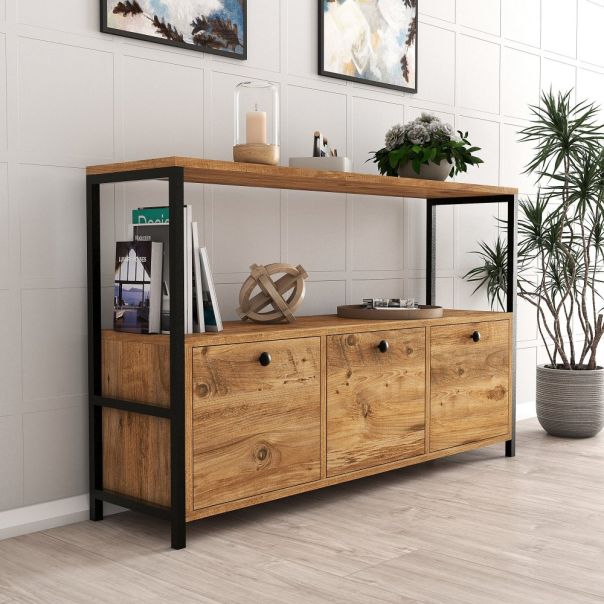 Sa dimenzijama konzole od 120 cm širine, 75 cm visine i 30 cm dubine, komoda Nero v2 savršeno se uklapa u svaki prostor. Njena braon/crna kombinacija boja donosi sofisticiran izgled koji se lako uklapa u različite stilove enterijera. Metalna šina debljine 1 mm i PVC obodna traka debljine 0,4 mm osiguravaju stabilnost i čvrstinu konstrukcije.