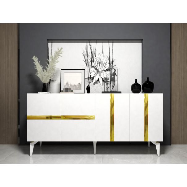 HANAH HOME Komoda Vania: Elegancija u beloj i zlatnoj