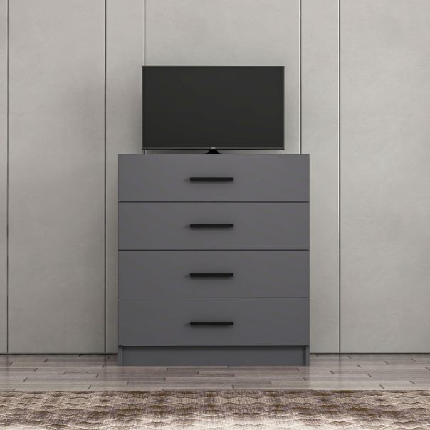 Komoda je opremljena sa četiri velika fioke, koje pružaju dovoljno prostora za skladištenje različitih predmeta. Bilo da želite da organizujete svoje medijske uređaje, knjige ili druge sitnice, ova komoda će vam omogućiti da sve bude uredno i na dohvat ruke.