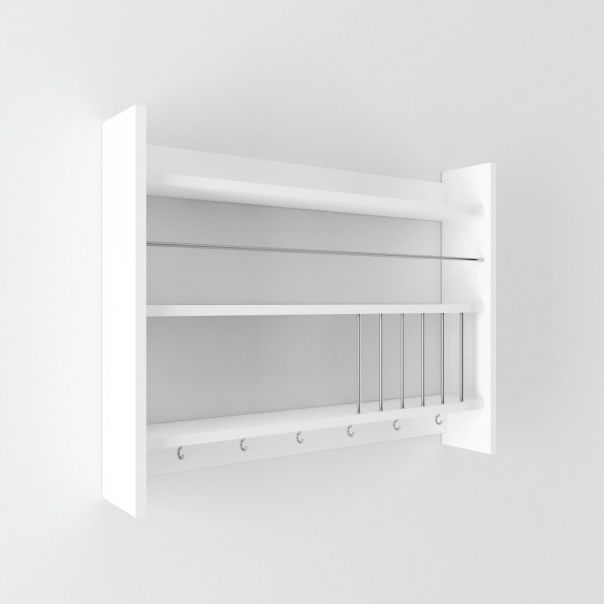 Jedna od posebnih karakteristika ove police su integrisani držači za šolje. Ovi praktični kukice omogućavaju da šolje budu uredno okačene, čime se dodatno štedi prostor i doprinosi organizaciji kuhinje.