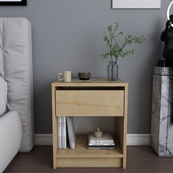 HANAH HOME Noćni stočić Sheridan u svetlobraon boji predstavlja savršen spoj elegancije i funkcionalnosti. Ovaj stočić je idealan dodatak svakoj spavaćoj sobi, pružajući praktično rešenje za odlaganje i organizaciju vaših ličnih stvari.