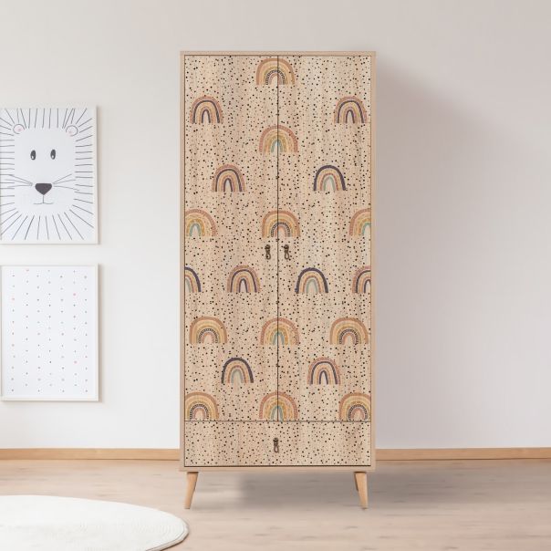 HANAH HOME Ormar City Gardrop Rainbow je savršen izbor za sve koji traže spoj modernog dizajna i praktičnosti. Ovaj dvokrilni ormar sa policama iz serije City Gardrop donosi osveženje u svaki enterijer zahvaljujući svom jedinstvenom višebojnom završnom sloju sa motivom duge.
