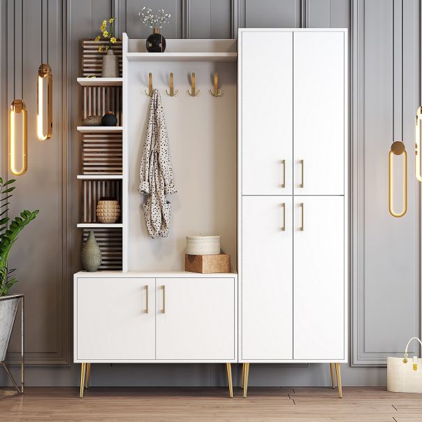 HANAH HOME Ormar za predsoblje sa čivilukom Viyana DA predstavlja savršen spoj elegancije i praktičnosti. Sa svojim modernim dizajnom u beloj i zlatnoj boji, ovaj ormar će se savršeno uklopiti u svaki enterijer, dodajući mu dozu sofisticiranosti.