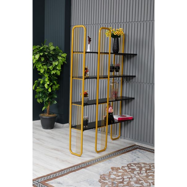 Struktura police izrađena je od metala u zlatnoj boji, što doprinosi njenom luksuznom izgledu. Zlatni detalji unose toplinu i eleganciju, stvarajući vizuelni kontrast sa crnom površinom police. Ova kombinacija boja čini policu Sierra pravim izborom za one koji žele da unesu dozu glamura u svoj prostor.