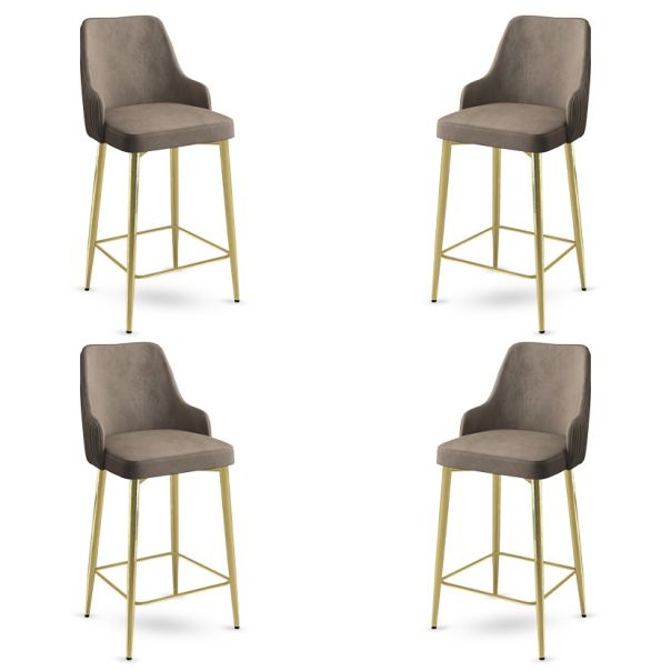 HANAH HOME Set barskih stolica Enox 4/1 u kapućino i zlatnoj boji predstavlja savršen spoj modernog dizajna i vrhunskih materijala. Okvir stolica je izrađen od 100% metala, što garantuje dugotrajnost i stabilnost. Tkanina Babyface dodaje notu luksuza i udobnosti, čineći ove stolice idealnim izborom za svaki enterijer.