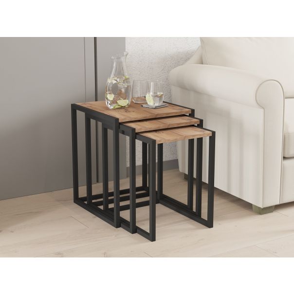 Set se sastoji od tri stola različitih dimenzija, što omogućava fleksibilnost u uređenju prostora: