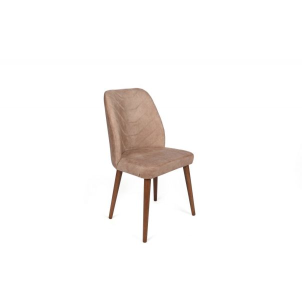 Stolice su izrađene od visokokvalitetnog drveta, što im daje čvrstinu i dugotrajnost. Presvučene su vervet tkaninom i plišom, što doprinosi njihovom luksuznom izgledu i prijatnom osećaju na dodir. Završna obrada u vizon i orah boji dodaje dodatnu notu sofisticiranosti.