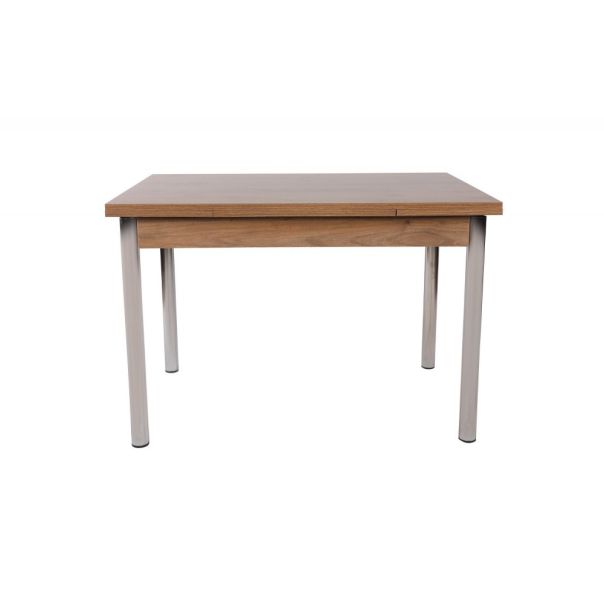 Ovaj sto je izrađen od visokokvalitetnog melamina, što mu daje izdržljivost i dugotrajnost. Metalne noge dodaju stabilnost i modernu notu, dok završna obrada u boji oraha unosi toplinu i prirodan izgled.