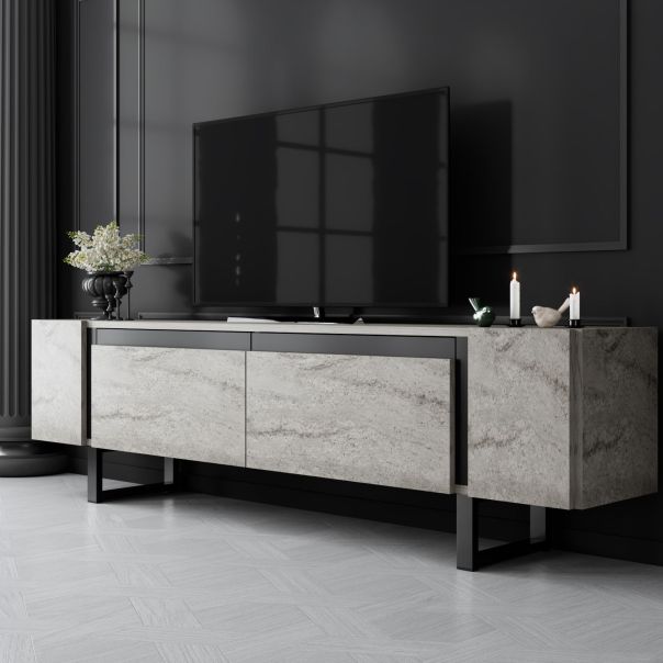 HANAH HOME TV komoda Yildiz, mermerna/crna