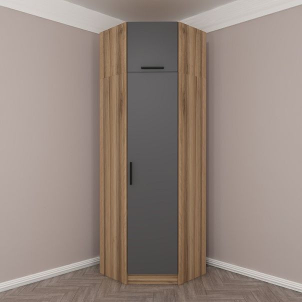 Sa dimenzijama od 74 cm širine, 255 cm visine i 52 cm dubine, ovaj ugaoni ormar je savršeno rešenje za svaki prostor. Njegov dizajn omogućava maksimalno iskorišćenje prostora, posebno u uglovima prostorija gde je često teško postaviti standardne komade nameštaja. Visina ormara od 255 cm pruža dodatni prostor za skladištenje, omogućavajući vam da organizujete odeću, obuću i druge predmete na efikasan način.