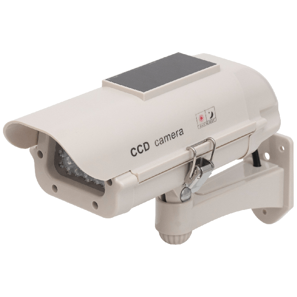• Lažna kamera sa solarnim panelom • Deluje preventivno • Namenjena za spoljnu upotrebu, može se montirati na horizontalne i vertikalne površine • Nagib i smer kamere se mogu podesiti prema potrebama korisnika • Sa crvenom LED diodom koja konstantno treperi • Solarni panel dopunjava baterije (nisu u sklopu isporuke, potrebno je koristiti punjive baterije), te nije potrebno često menjanje