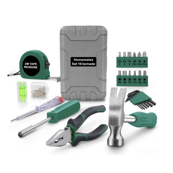 HOMEMATE set ručnih alata 10-u-1 – prenosivi komplet sa kleštima, metrom, šrafcigerima i torbom za odlaganje