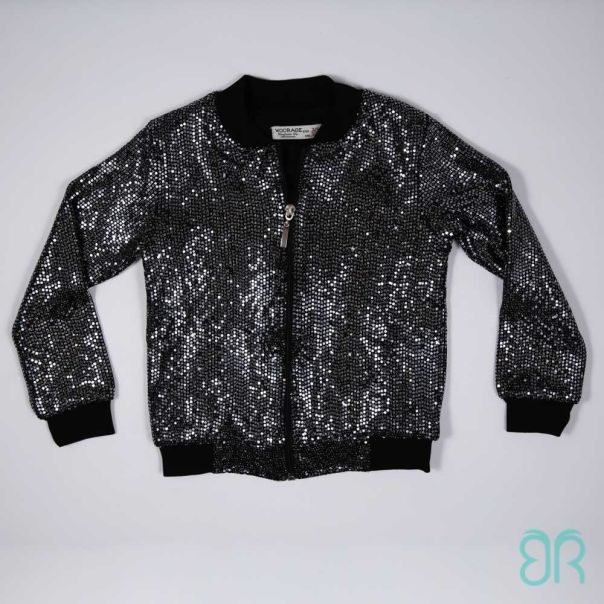 Metalik jakna sa okruglim izrezom, elastičnim porubom i dugim rukavima. Kopčanje rajsferšlusom sa prednje strane.