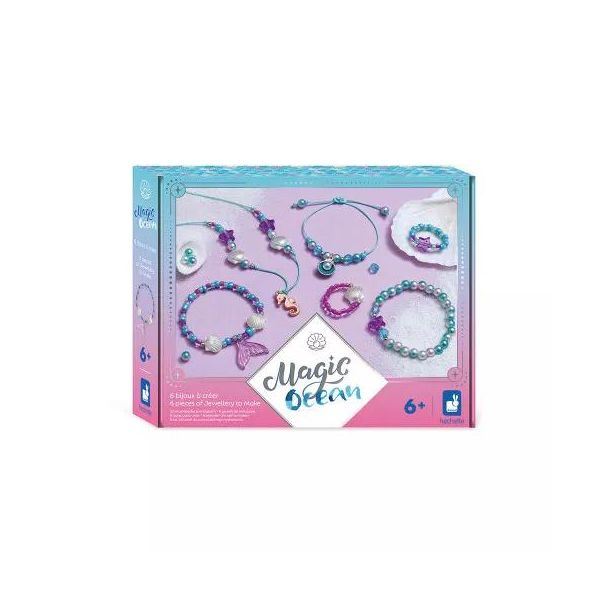 Napravite nakit za čarobnjaka šegrta! Sa ovim kompletom za izradu nakita deca od 8 i više godina mogu da naprave 6 kreacija na temu magije: 2 prstena, 3 narukvice i 1 ogrlicu. Izradom sopstvenog čarobnjačkog nakita deca razvijaju svoju kreativnost ali i spretnost. Uključena je i knjižica sa uputstvima i modelima za kreaciju, kako bi mališani sami ili uz pratnju napravili svoj nakit. Uronite u svet kolekcije „Magični okean“, kreativnih kompleta za slobodno vreme za decu na temu dubokog mora, za kreativna popodneva uljuljkana šumom talasa!
