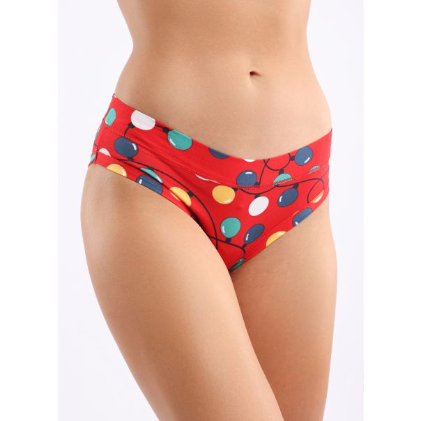 Slip za žene u crvenoj boji sa dezenom sa lampionima deo je Party Light kolekcije. Izrađen je većinski od pamuka sto ga čini nežnim i prijatnim prema koži, a mali dodatak elastina doprinosi većoj udobnosti i prilagodljivosti telu. Lepo stoji svim građama i lepo se uklapa sa drugim modelima iz iste kolekcije.,