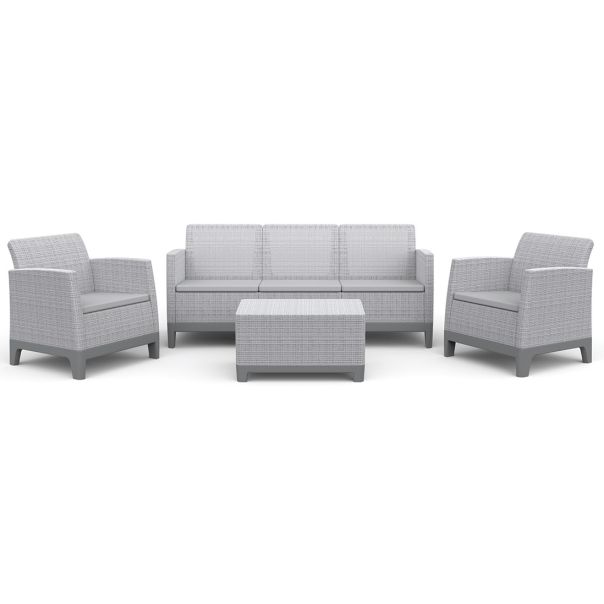 Izrađen od kvalitetne plastike sa stabilnim okvirom, ovaj set obezbeđuje dug vek trajanja i visok nivo udobnosti tokom mnogih sezona. Pažljivo odabrani materijali obezbeđuju otpornost na promene vremenskih prilika, čuvajući izgled i funkcionalnost seta godinama.
