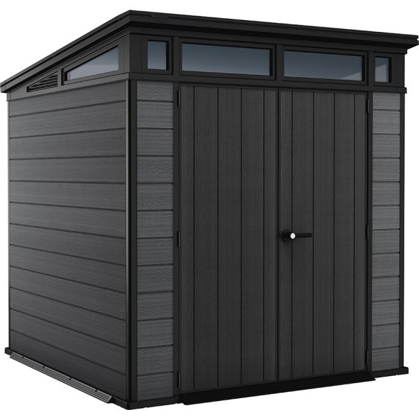 Baštenska kućica Cortina 7x7 predstavlja savremeno rešenje za sve vaše potrebe skladištenja u bašti. Sa svojim jednokosim krovom i trostranim krovnim prozorima, ova kućica odiše modernim karakterom. Jednostavna dvokrilna vrata dodatno naglašavaju njen originalan dizajn, omogućavajući lak pristup unutrašnjosti.