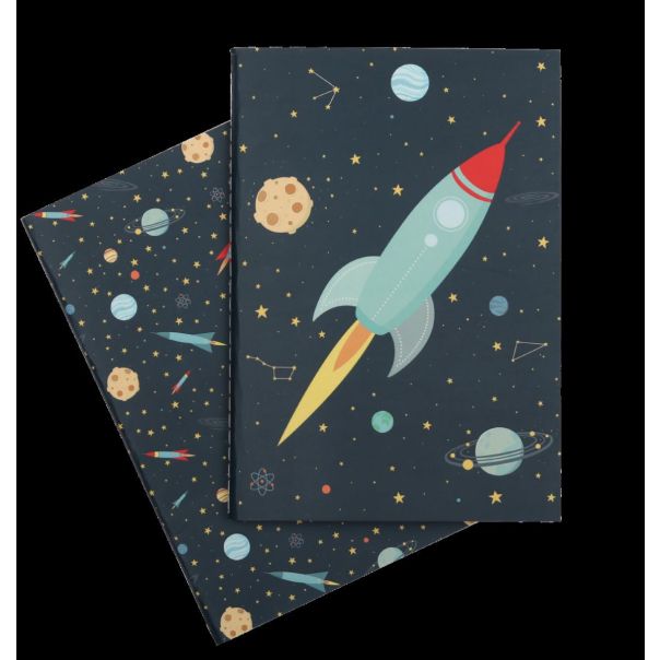 Zapamtite sve planete zapisujući ih u ove zgodne sveske sa dizajnom svemira! Sveske imaju meke korice i stranice sa linijama. Odličan set od 2 sveske.