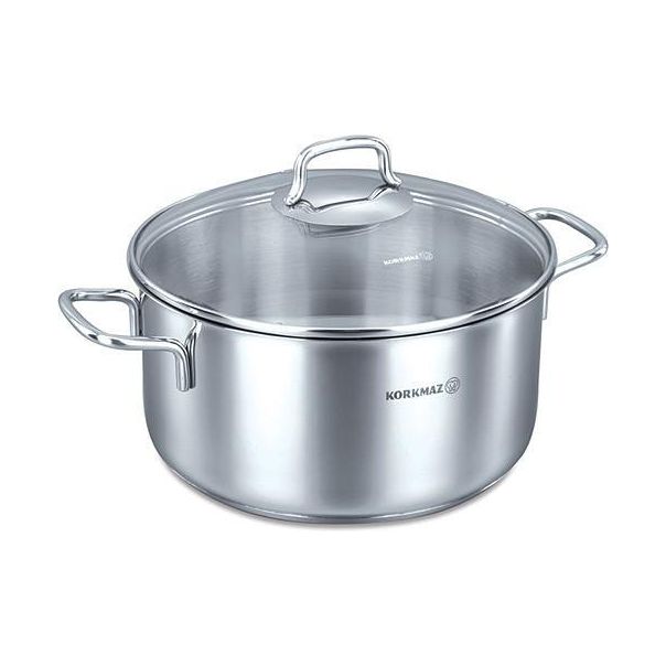 Šerpa od nerđajućeg čelika. Poklopac od kaljenog stakla. Dimenzije: 22 x 11 cm. Zapremina: 4 L