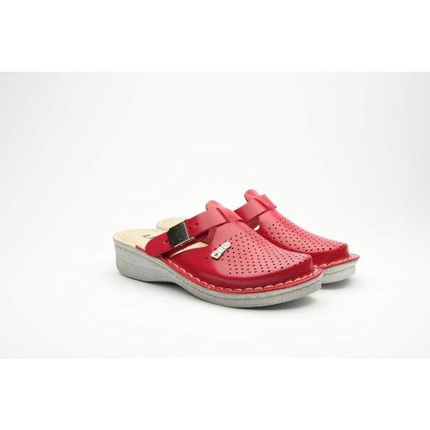 Ženska papuča izrađena od prirodne kože sa ventilirajućim rupicama i kožnom tabanicom koja sadrži masažni gel. Đon je naparvljen od poliuretanske mase koji sadrži anti – slip čep koji sprečava klizanje