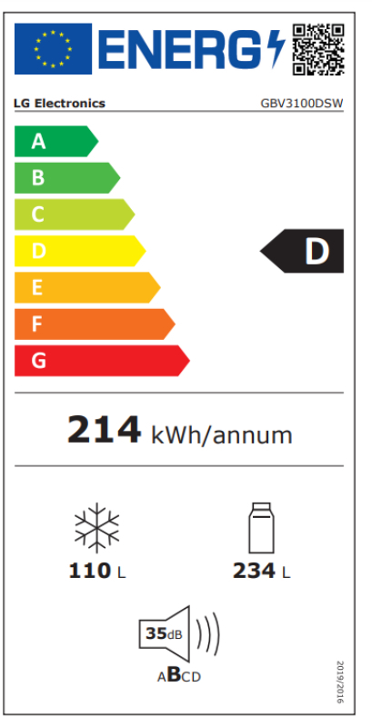 LG Smart inverter kompresor garantuje energetski efikasan, dugotrajan i tih rad. Frižider je svrstavan u energetski razred D, sa godišnjom potrošnjom električne energije od 214 kWh.