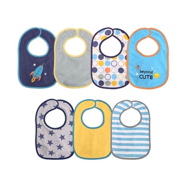 Opis proizvoda: Praktičan i jednostavan proizvod namenjen zaštiti dečije odeće tokom obroka. Napravljena je od mekanog pamuka. Jednostavne za održavanje. Povezivanje pomoću čičak trake. 7 komada u pakovanju, za svaki dan u nedelji po jedna portikla.