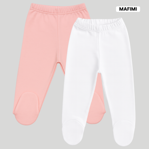 Mafimi Pamučne Pantalonice sa stopicom set od 2 - kajsija, bela