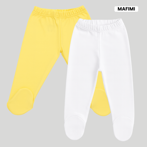 Mafimi Pamučne Pantalonice sa stopicom set od 2 - žuta, bela
