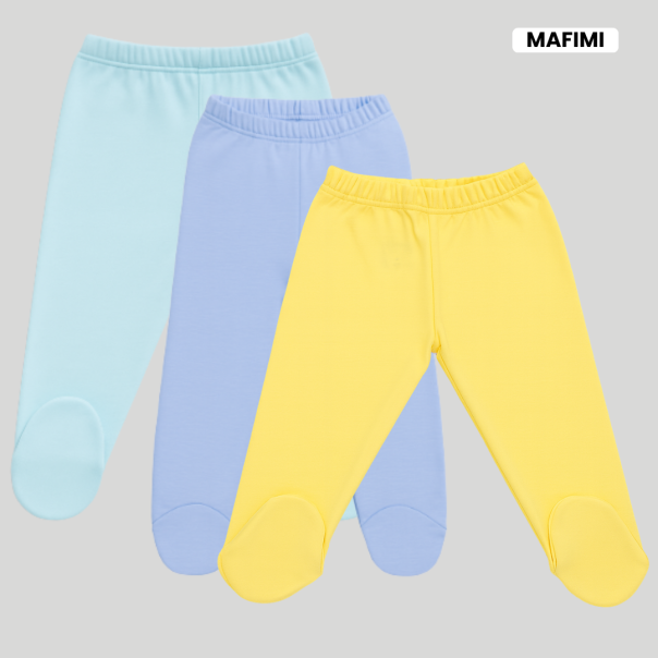 Mafimi Pamučne Pantalonice sa stopicom set od 3 - aqva, plava, žuta