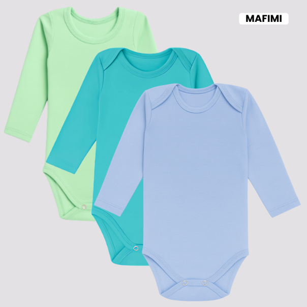 Mafimi Pamučni Bodići Dugi rukav set od 3 - mint, tirkiz, plava