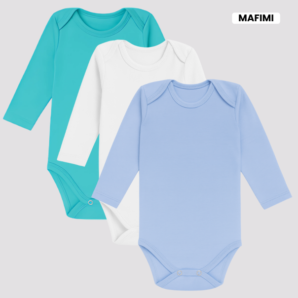 Mafimi Pamučni Bodići Dugi rukav set od 3 - tirkiz, bela, plava